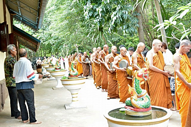 ในงานกฐินช่วงเช้าเวลา8.30น.มีพิธีทำบุญตักบาตร สำหรับญาติโยมที่มาร่วมงาน
